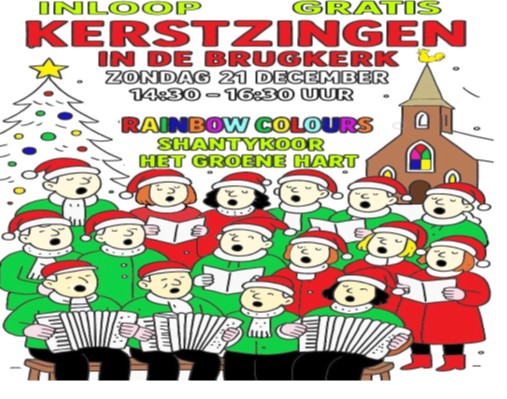 Zondag 21 December is er kerstzingen Kerst Zingen In De Brugkerk aan de Dorpsstraat 532396 HD Koudekerk aan den Rijn. van 14:30 uur tot 16:30 uur met het Shantykoor het Groene Hart en de Rainbow Colours. Inloop is gratis